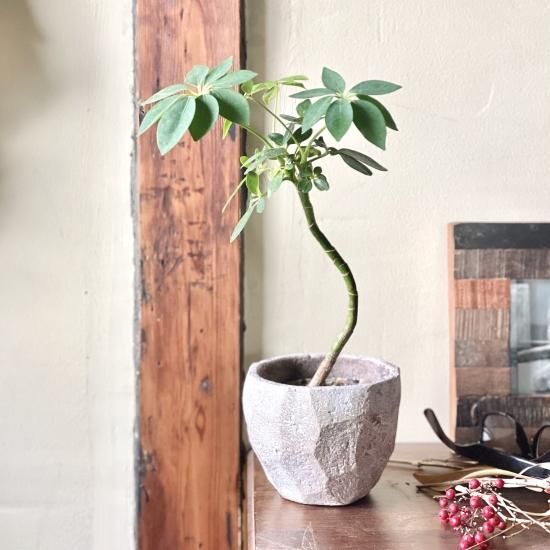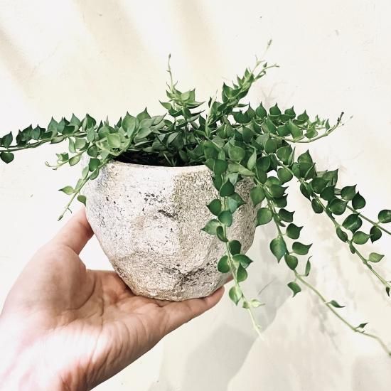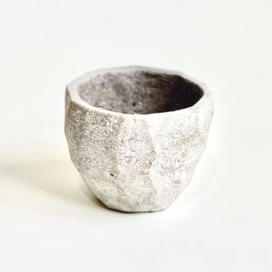 石を削り出して造っているかのような素材感たっぷりのセメント製ポット。